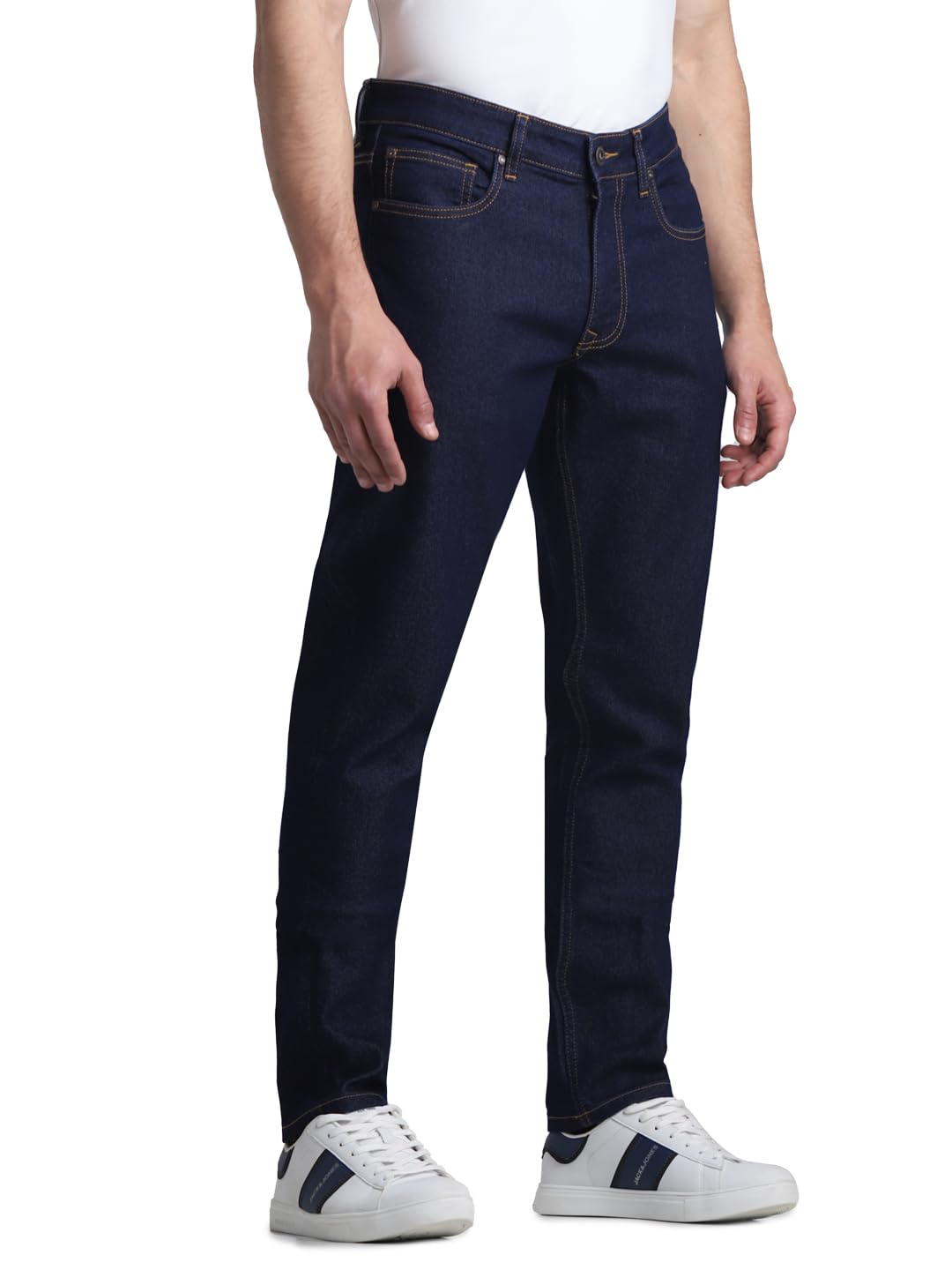 Jack & Jones Men Solid Cotton Blend Slim Fit Low Rise Stretchable Light Blue Jeans