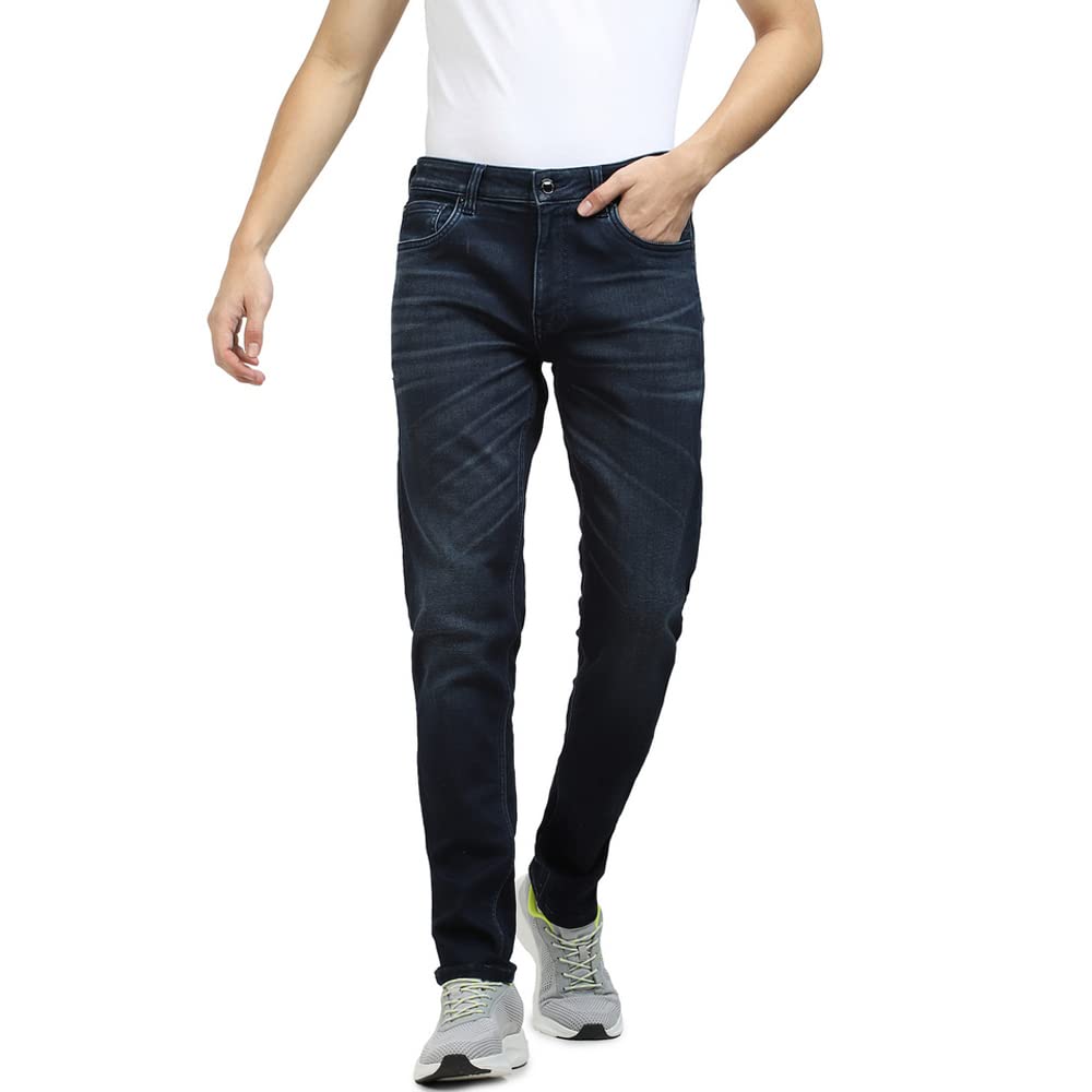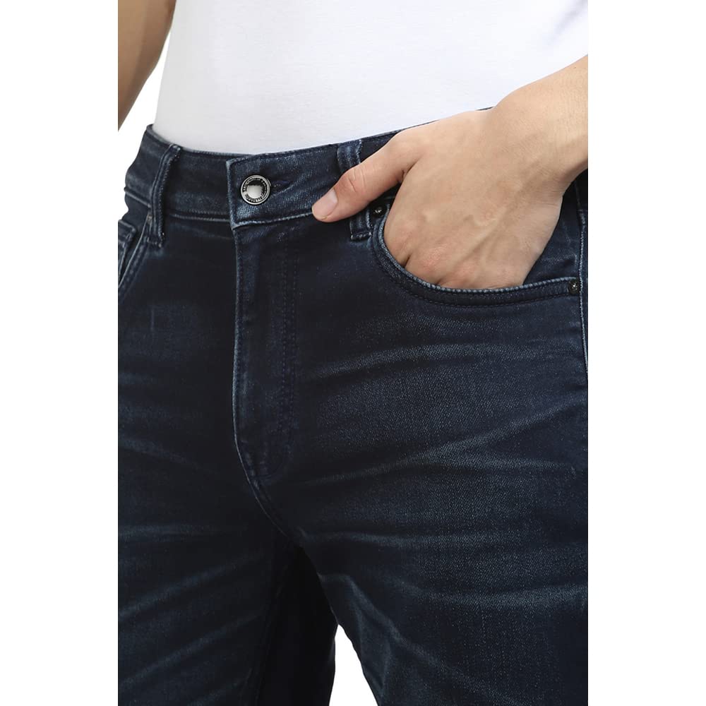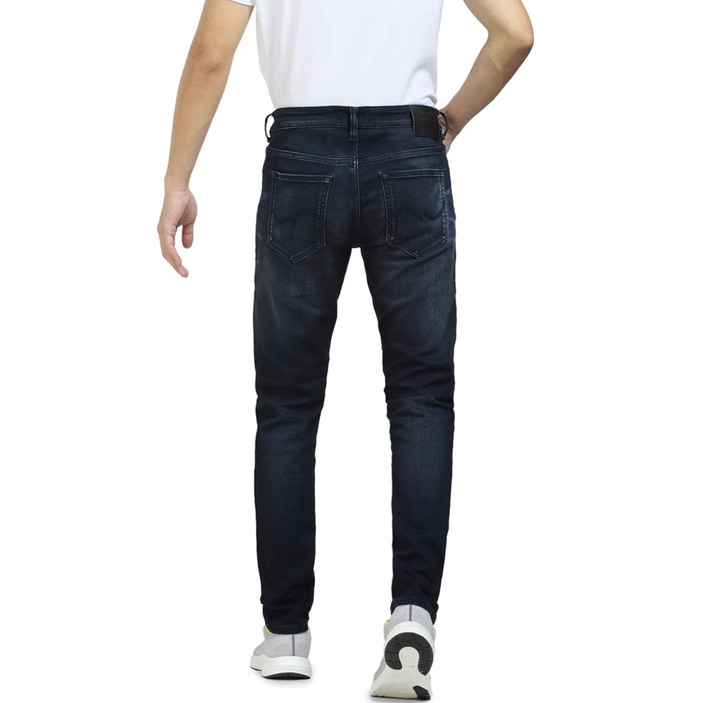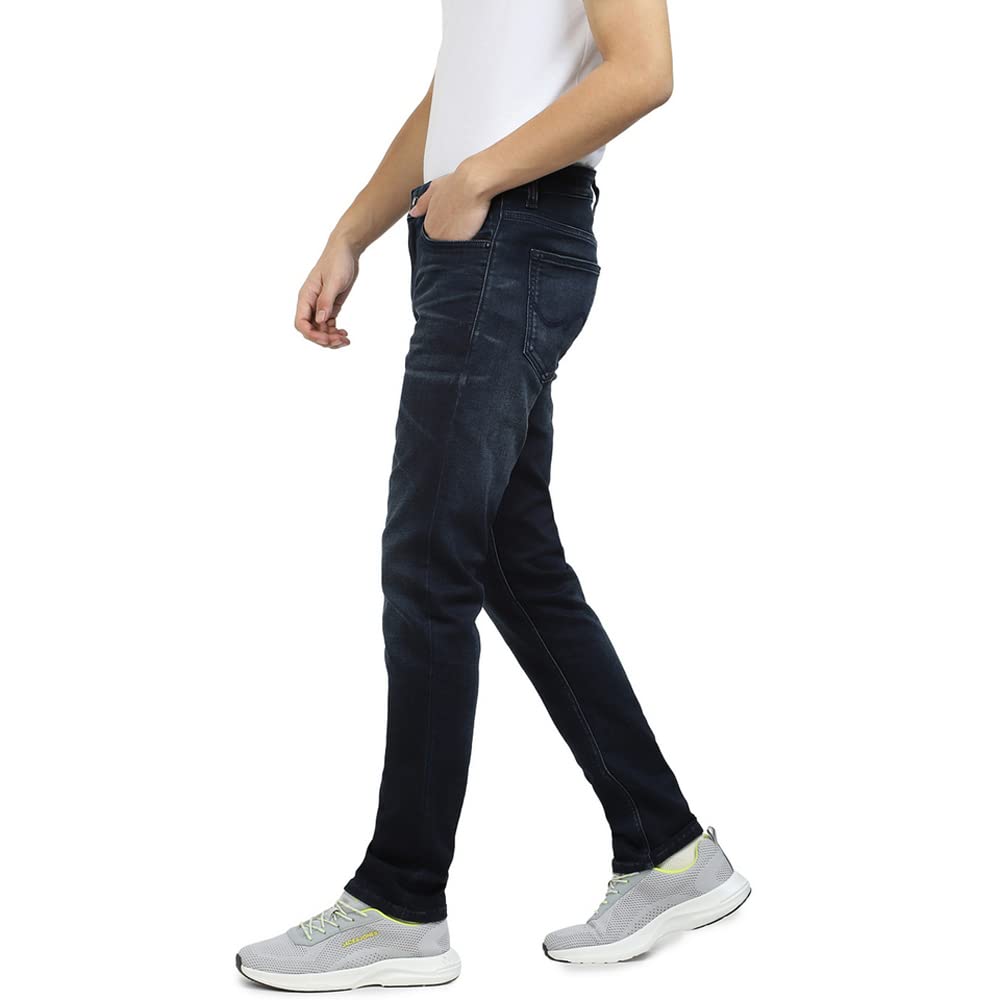 Jack & Jones Men Solid Cotton 83% Polyester 16% Elastane 1% Skinny Fit Dark Blue Jeans