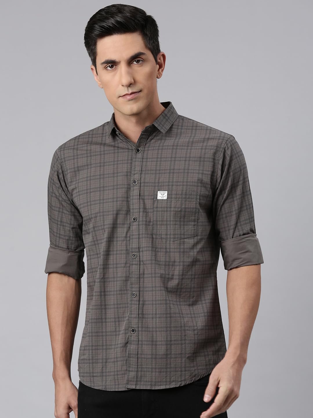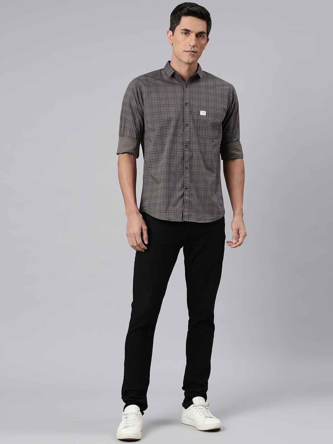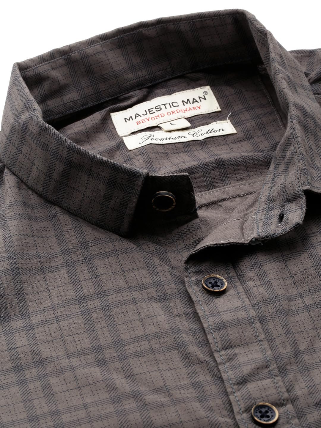 Majestic Man Men’s Comfort Slim Fit Pure Cotton Opaque Checked Casual Shirt (in, Alpha, Large, Regular, Grey)