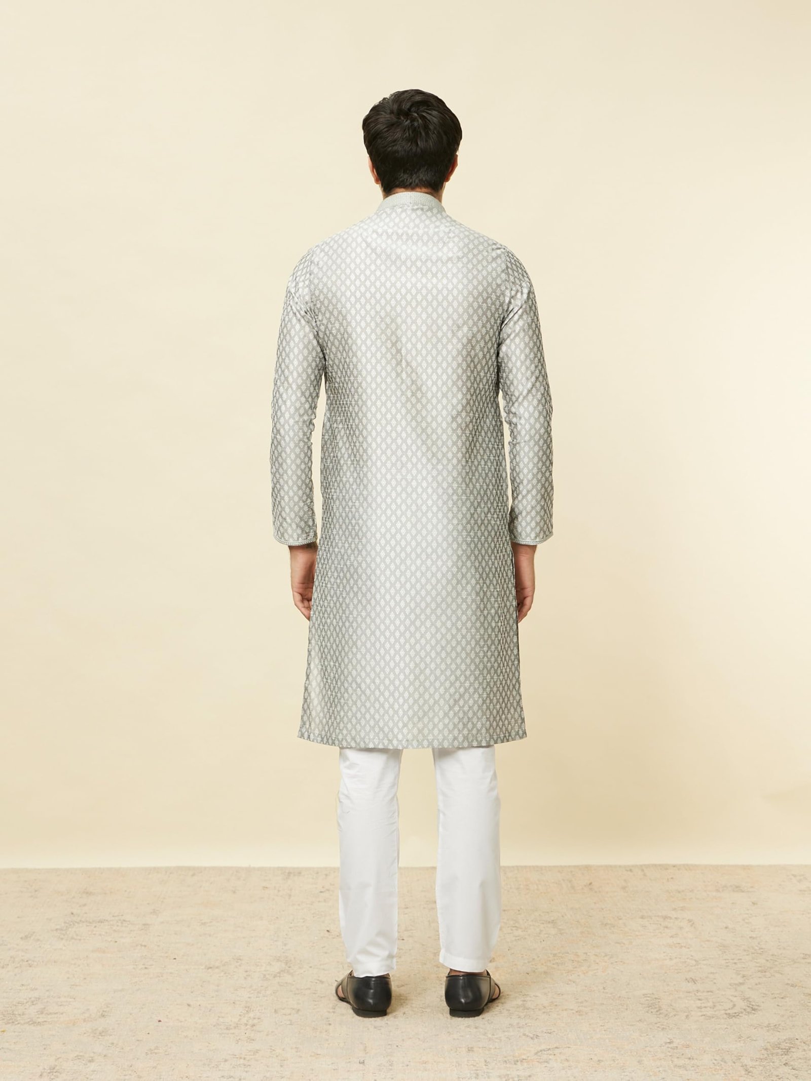 Manyavar Men’s Regular Fit Kurta & Churidar Set, Grey – Small (S952808-308)